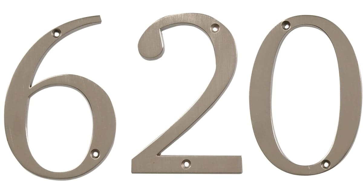 We dig these simple and sleek brushed nickel numbers. 4 in. Flush Mount Brushed Nickel Metal Number, $6 each,