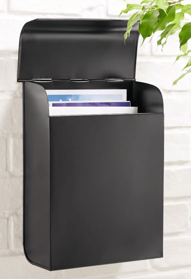 This mounted letter box leaves the frills behind in favor of clean, modern lines. Classic Mounted Mailbox, Black, $60,