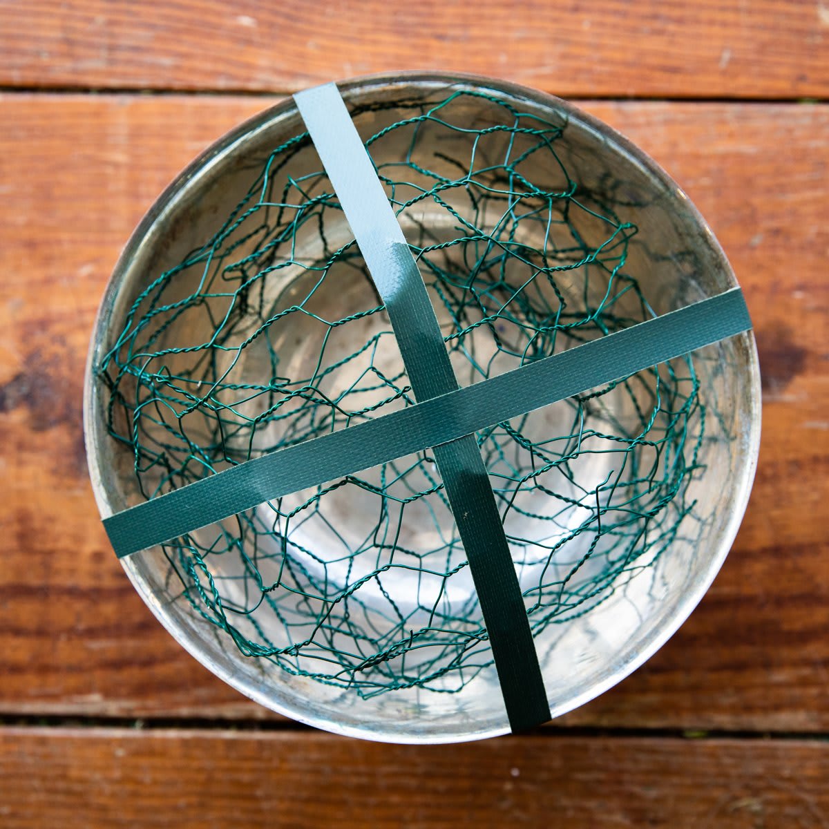 Begin by choosing your vessel—a low, wide-mouthed bowl will work best for a centerpiece. Snip chicken wire with wire cutters, mold it into a ball, and place it at the bottom of the vessel, providing a foundation for the stems.